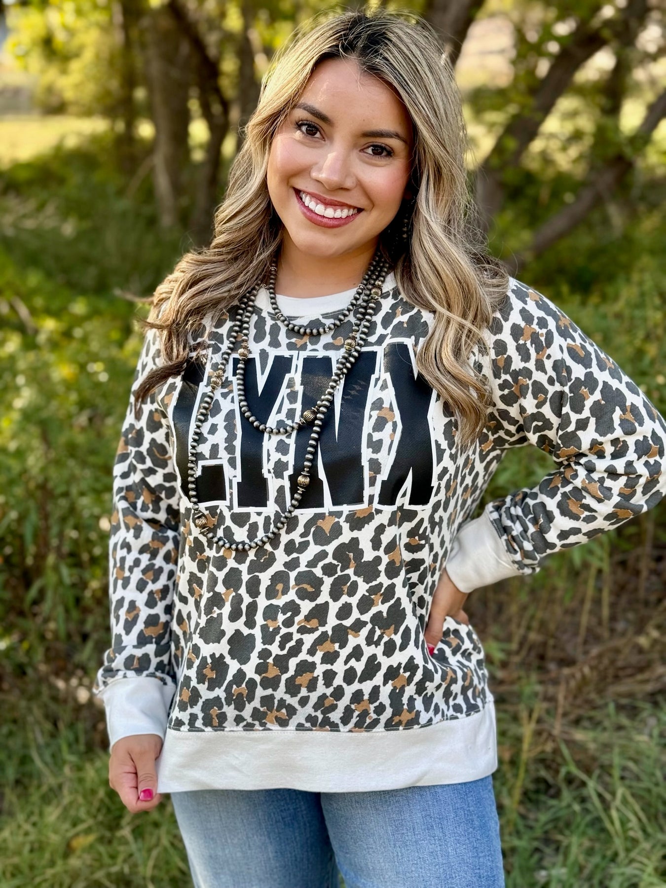 This leopard light-weight sweatshirt is absolutely amazing and now even cuter with your custom school or mascot in black with a fun, white glitter outline around it! A perfect game day piece when the weather is cooler outside!