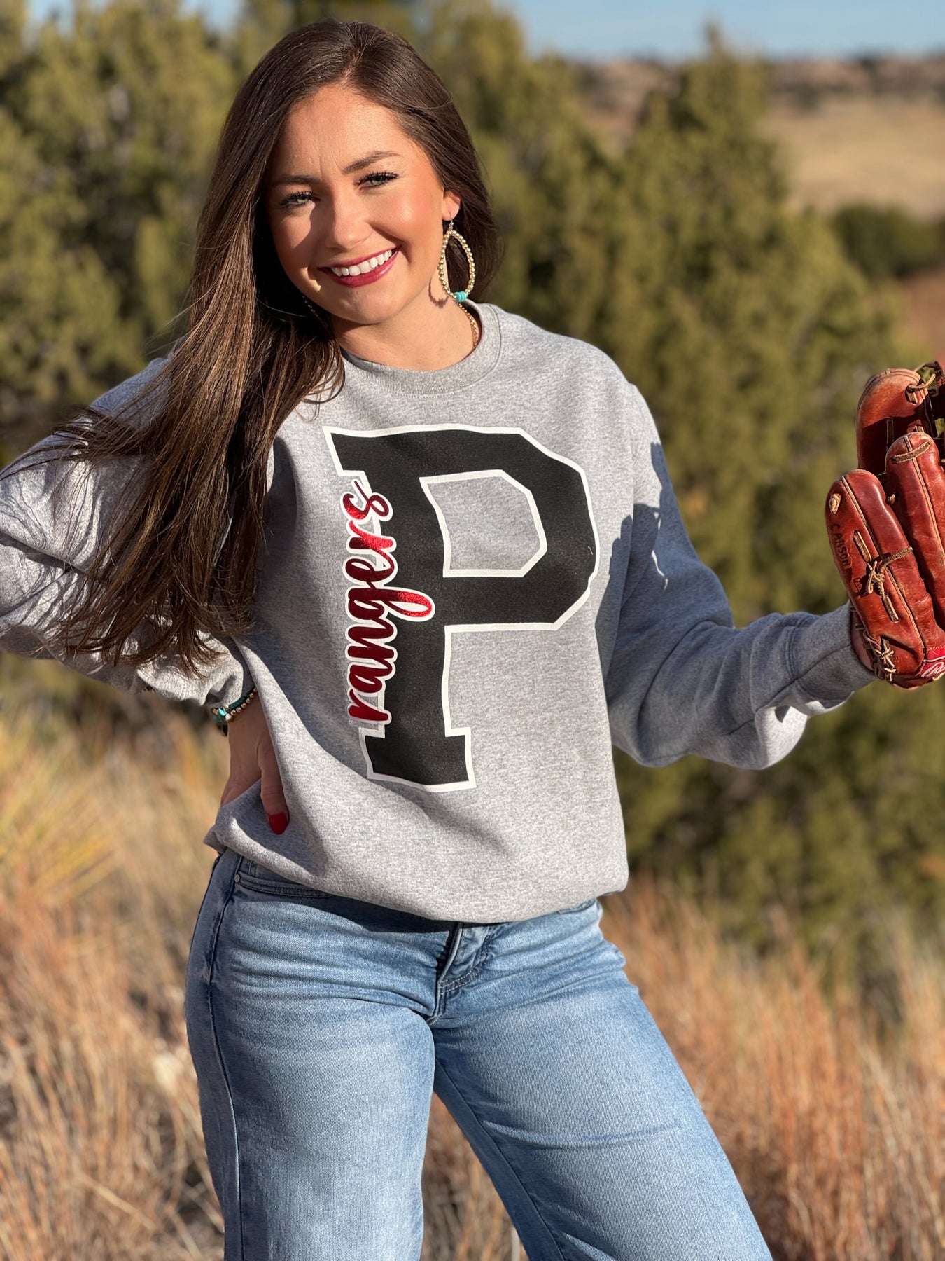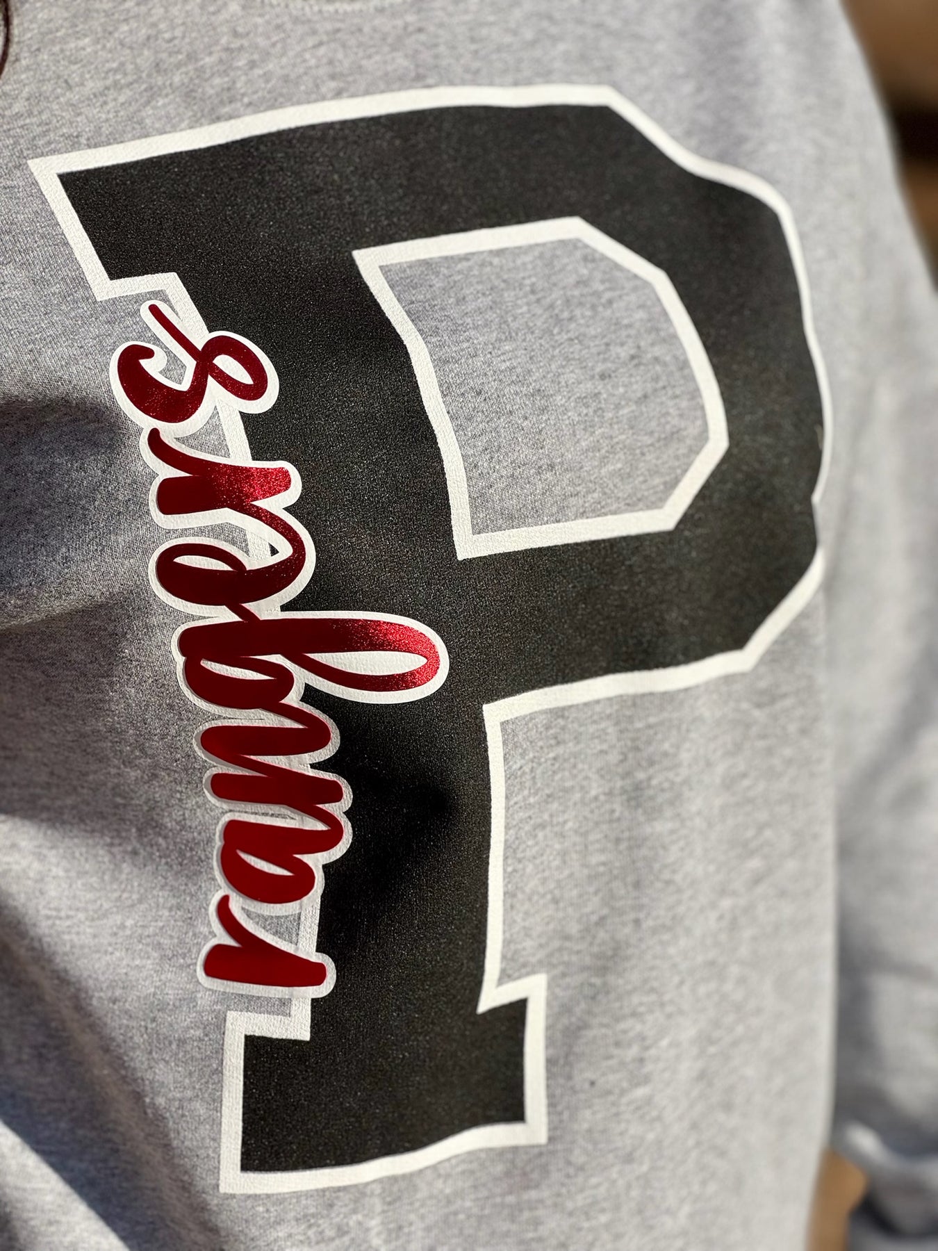 Everything is cuter when it's big! Custom your letter to fit your favorite team! Only available on a grey colored sweatshirt.